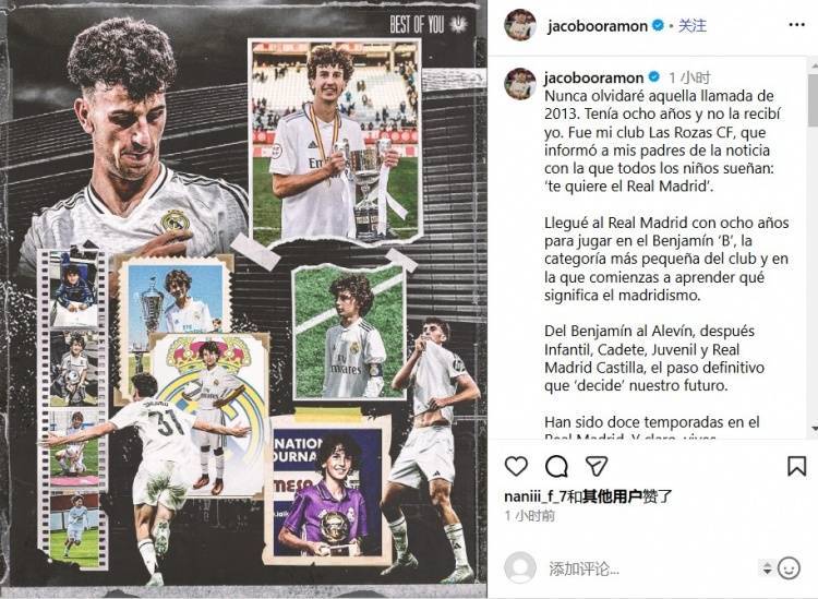 拉蒙写道:我永远都不会忘记2013年的那通电话,那时我只有8岁,电话并不是我接的。我所在的俱乐部Las Rozas CF向我父母通知了一个所有孩子都梦寐以求的消息,那就是皇马想要得到我。